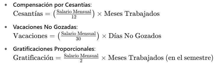 - Indemnización por Despido: Si el despido es arbitrario, se paga una indemnización proporcional.